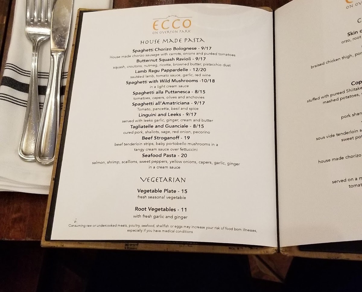 Ecco on Overton Park offers a thoughtfully curated menu that balances classic Italian flavors with seasonal, fresh ingredients. The vibe leans toward a comfortable yet refined dining experience, where house-made pastas and thoughtfully crafted dishes fit effortlessly into both lively dinners and more relaxed weekday meals.